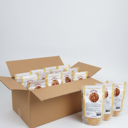 Each box contains 15 packs (500g each) of clean, locally sourced kernels with excellent popping quality and a long shelf life.